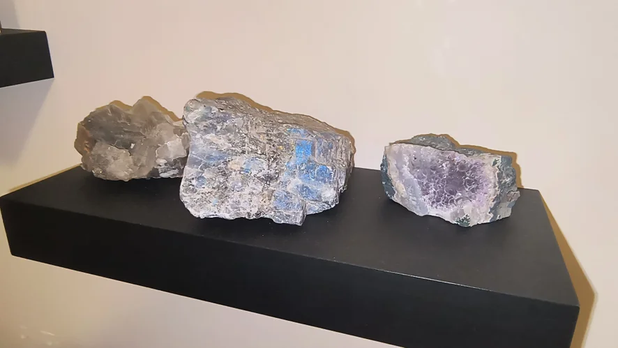 Left to right is, - Smokey Cubic Fluorite (Pakistan) - Labradorite (Madagascar) - Amethyst on moss agate ( Brazil)
