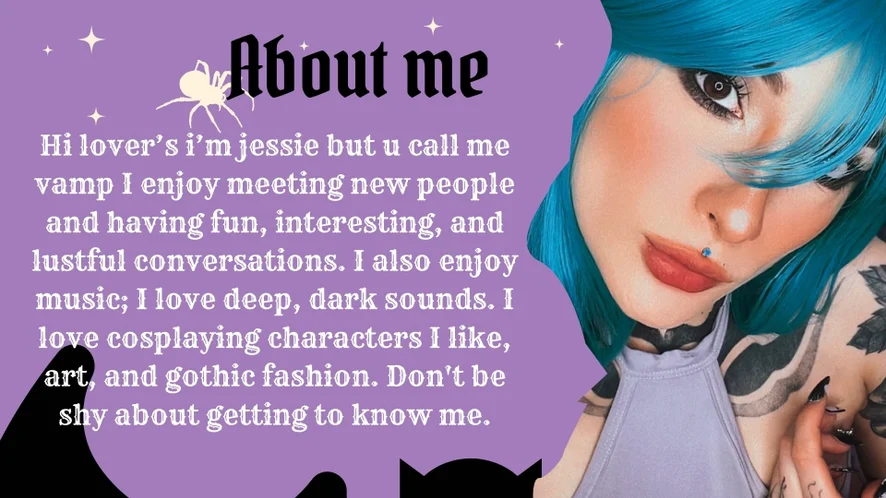 ♱♱ Have you ever been intimate with a vampire girl? Welcome! Free space to be yourself. I love music, experimenting, and sometimes I cosplay. Surprise yourself with my different style every day.